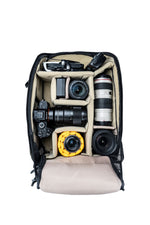 The sturdy backpack guarantees rugged protection and easily safeguards a DSLR or mirrorless/CSC/hybrid camera, 4-5 extra lenses (up to 70-200mm f/2.8), a flash, and accessories. You also have versatile options for carrying video gear or a small drone individually or alongside your camera gear. You can even place a small tripod within the bag -- depending on the gear and the available space -- or it can be docked externally in the side pocket (which is also a great water bottle carrier).