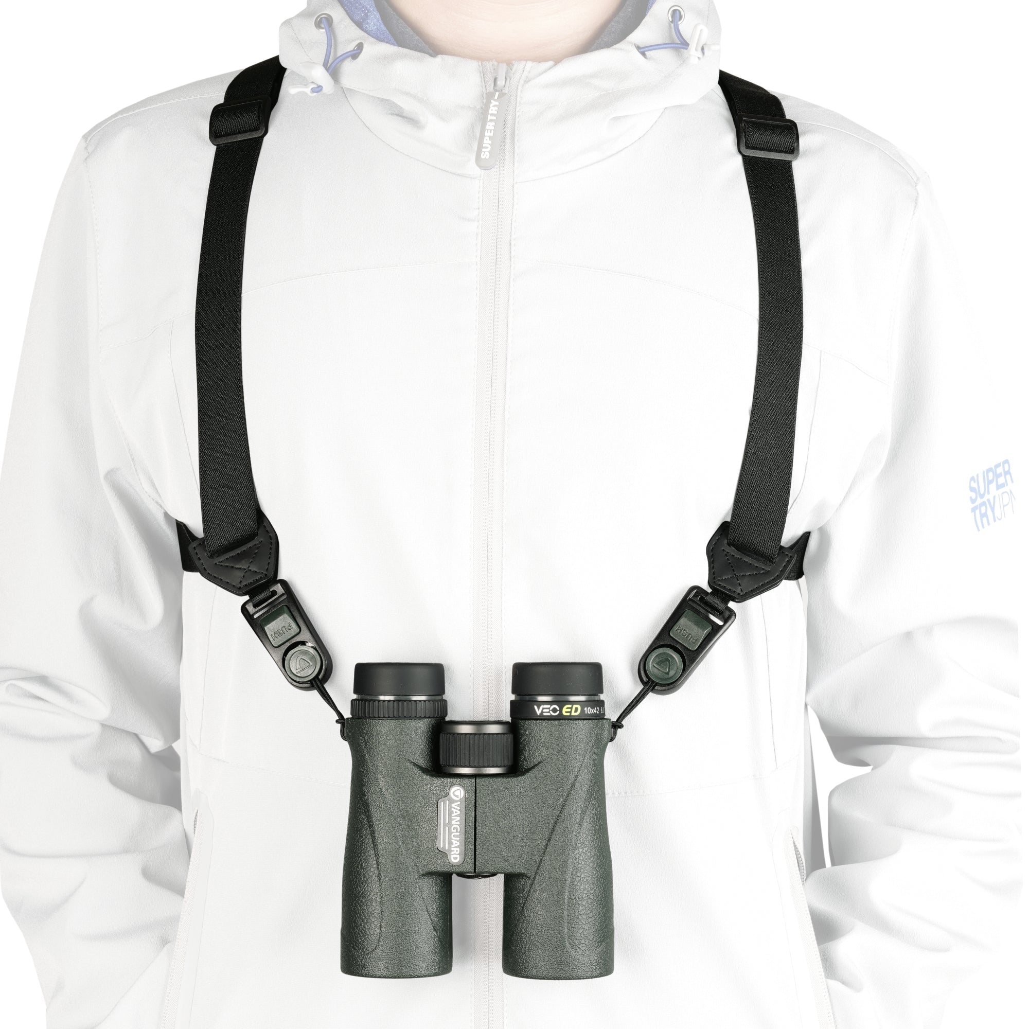 This premium optics neck strap features Vanguard's patented quick-release system, which allows you to switch between the neck strap and the harness in seconds.