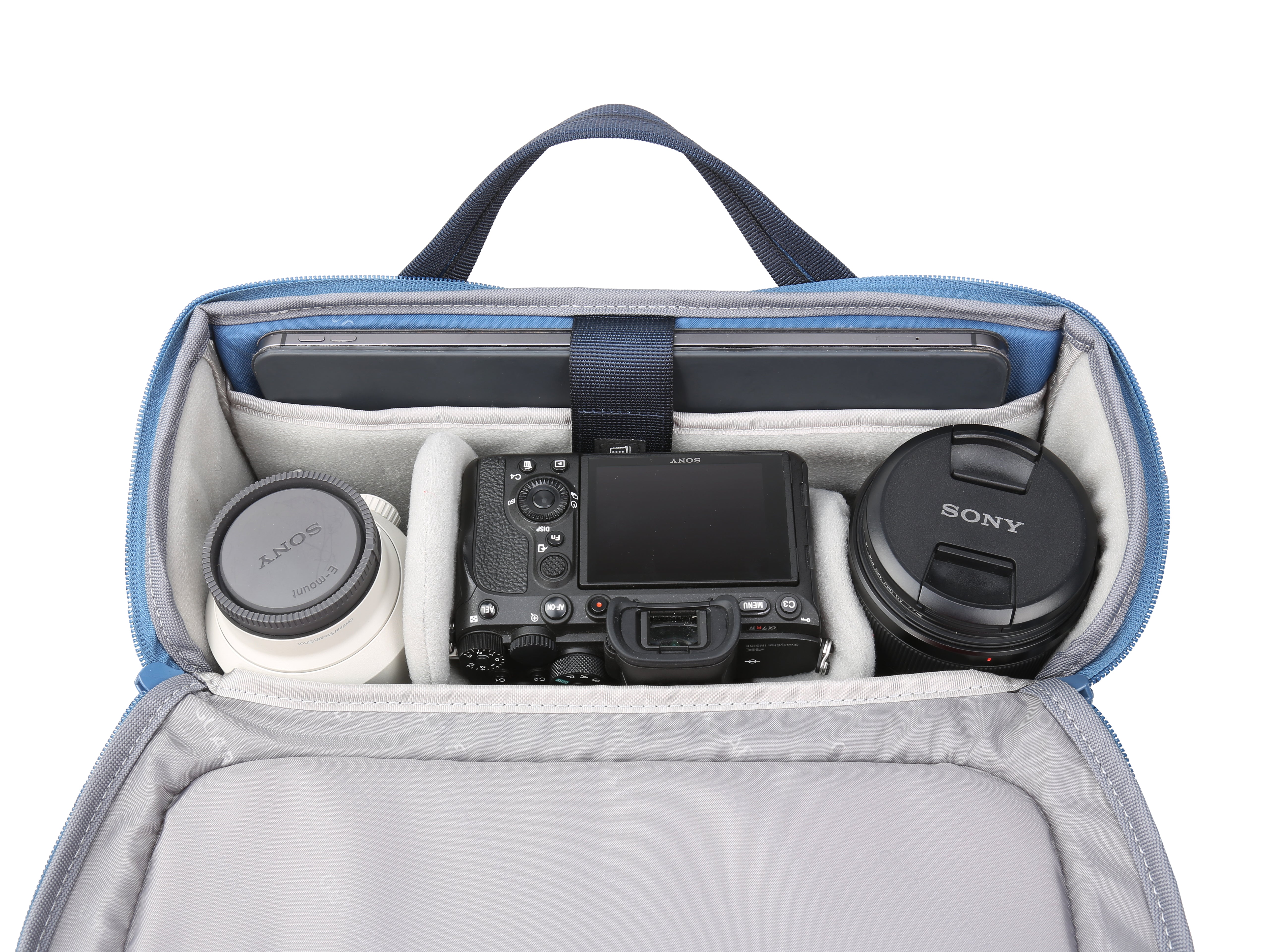 The VEO RANGE 32M messenger bag fits a CSC or Entry DSLR camera with lens attached, 1-2 extra lenses, a flash, accessories, and up to a 12.9" tablet. Alternatively, it can also fit a small drone.